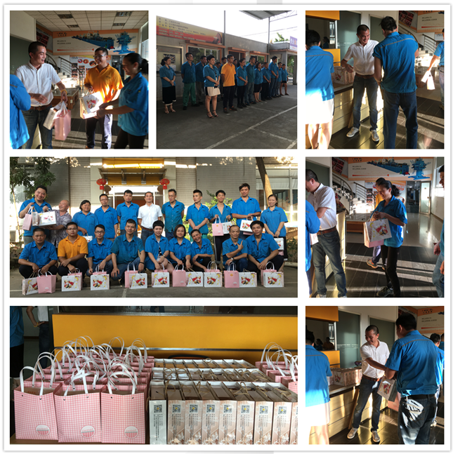 在9月29日這個(gè)美好的日子里,漢高機(jī)械的所有員工匯聚一起,共同來感受這個(gè)節(jié)日帶給我們的喜悅。下午17:00,所有員工集合,公司肖總致辭,提前預(yù)祝所有員工國慶中秋節(jié)日快樂!并且親自將公司準(zhǔn)備的中秋禮品發(fā)放到每一位員工的手上。