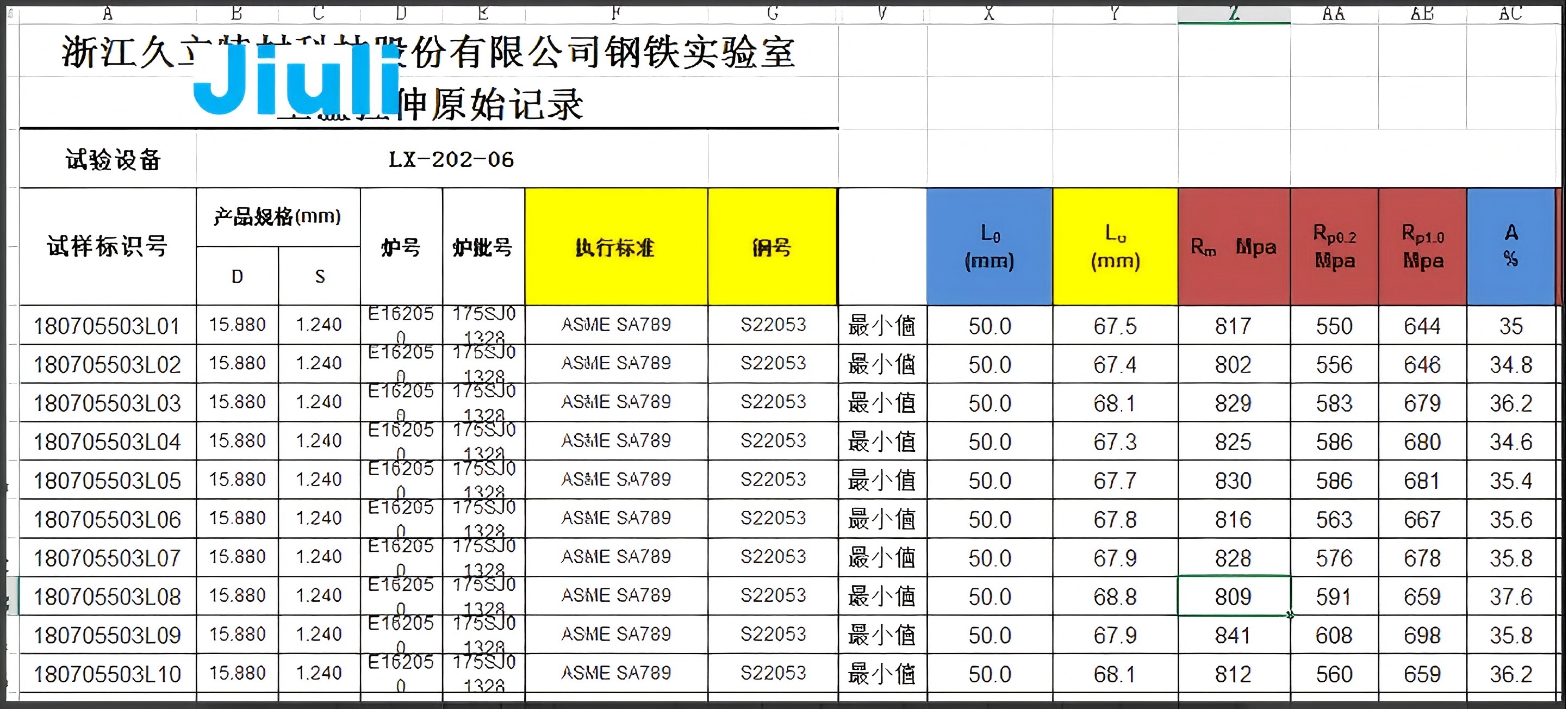 材料性能標(biāo)準:屈服強度、抗拉強度、延伸率均符合美標(biāo)ASME AS789
