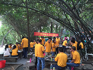 好了,來(lái)到這里,肯定馬上選好自己的坐騎,哦,對(duì),是自行車(chē)。漢高公司秉承“男女搭配,干活不累”的精神,選擇了2人自行車(chē),男同胞們都多用點(diǎn)力氣噢。Ps:這里很多斜坡,加油咯。當(dāng)然運(yùn)動(dòng)之前,肯定要填飽肚子先,我們一馬當(dāng)先踩到燒烤場(chǎng)地,風(fēng)風(fēng)火火地起爐子,不下10分鐘,馬上就弄好4個(gè)爐,可想而知,這里有很多吃貨。真的不能低估吃貨們的心,不要得罪他們哦。爐子好了,各位都選擇自己喜歡得食材進(jìn)行燒烤,頓時(shí)香味撲鼻,小編都引不住,大塊肉,大口喝,這Feel 倍爽!爽、爽、爽。
