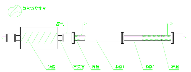 三 工藝特點(diǎn): 將不銹鋼焊管用感應(yīng)加熱的方式加熱到固溶所需溫度(304材質(zhì)1040℃),并在以氫氣為保護(hù)氣體的密封裝置中進(jìn)行固溶化處理,改善焊縫的組織結(jié)構(gòu)并消除應(yīng)力,以增強(qiáng)抗腐蝕性能;用氫氣作保護(hù)氣體可使固溶化處理后的焊管變得光亮并加快冷卻速度。 不銹鋼焊管加熱到固溶溫度后的冷卻采用間接冷卻方式,以保持焊管光亮。 其加熱與冷卻部分設(shè)備示意圖如下: