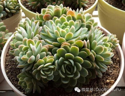 8. 爆盆:字面意思即多肉生長季節(jié)不斷長出側(cè)芽或瘋狂長大滿滿一盆、甚至略顯擁擠的最佳狀態(tài),多為易群生品種或護(hù)盆類小型多肉品種。