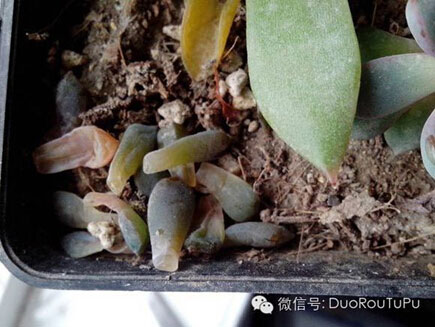 5. 斷水/控水:斷水就是停止?jié)菜?,而控水就是適當(dāng)控制澆水的量與次數(shù)。斷水與控水多在冬夏兩季,因為冬夏兩季大多數(shù)品種的多肉會進(jìn)入休眠期,對水分需求減少,如過多水分反而會導(dǎo)致多肉化水、黑腐等不良后果。